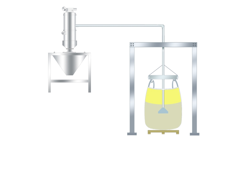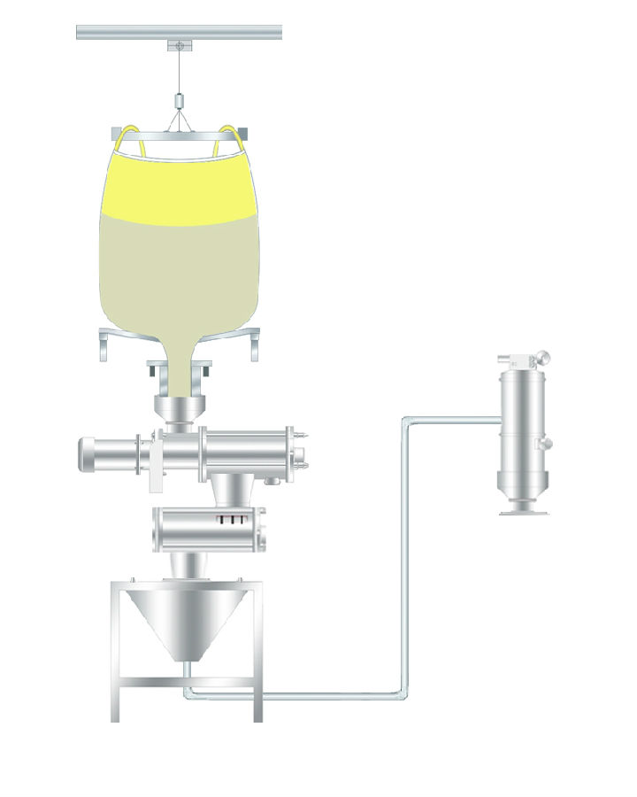 說明:此種吸料方式是由下往上吸料,拆包機(jī)下部出口需加裝補(bǔ)氣裝置。